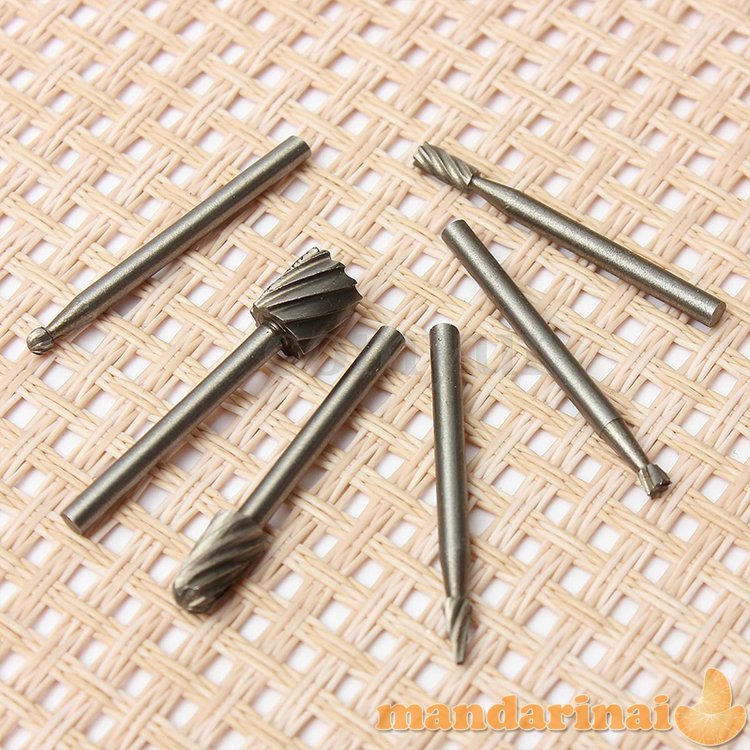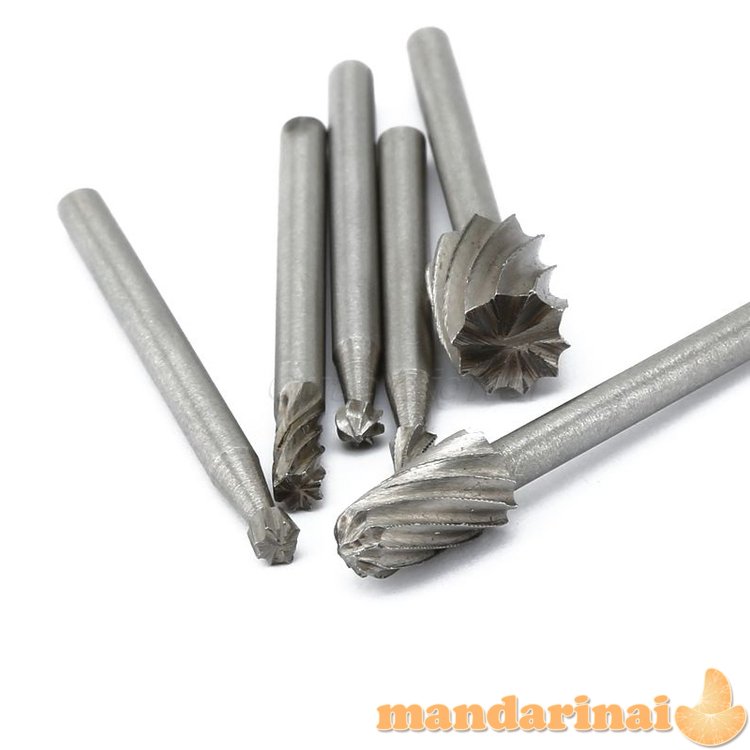 Antgalių frezai rinkinys: 6 vnt. antgalių Angalių kotelių plotis: 3.17mm. Bendras antgalių ilgis: ~39mm.