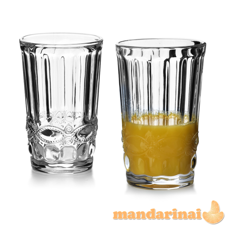 Šie puodeliai yra pagaminti iš ne spalvoto stiklo su nuostabiu įspaudimu. Talpa: 350 ml Ilgis: 8cm Plotis: 6 cm Aukštis: 12,5 cm Svoris: 385 g Nustatytas svoris: 2,286 kg Nurodyta kaina už rinkinį Medžiaga iš kurios pagaminta prekė: Stiklas Ilgis (cm): 8.00 Plotis (cm): 6.00 Aukštis (cm): 3.00