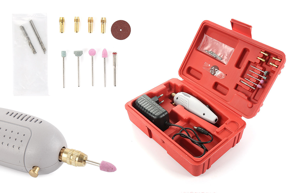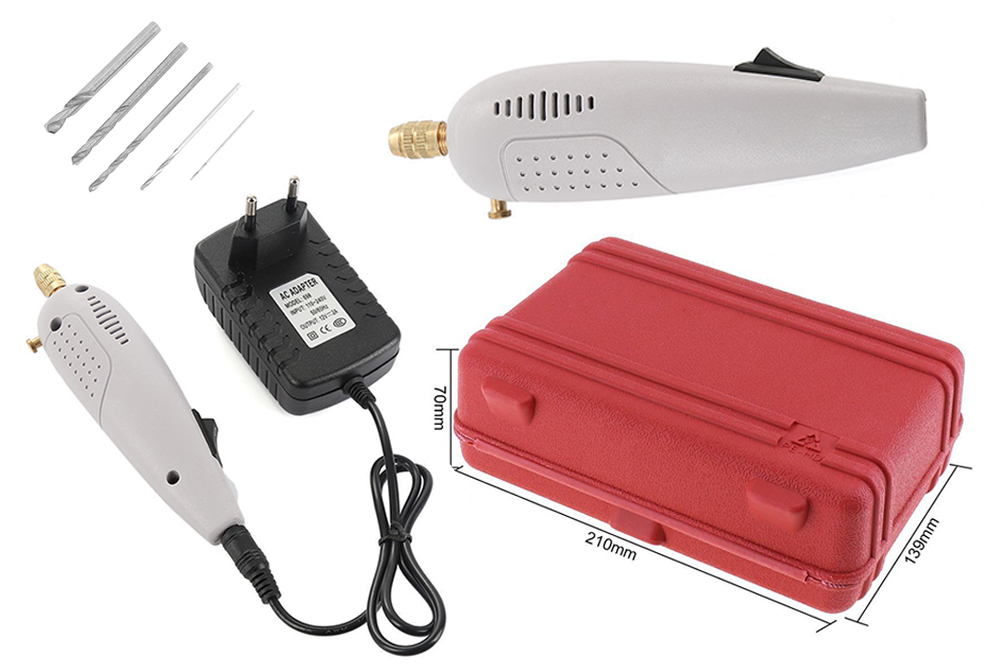 Puikus ir nepakeičiamas prietaisas gaminantiems papuošalus ar kitiems smulkiems darbams. Universalus įrankis su besikeičiančiu antgaliu (0.5mm - 3.0mm). Išskirtinis dizainas, patogus ir lengvas, todėl naudingas darbams reikalaujantiems daug laiko. Antgalius galima keisti be jokių papildomų priemonių. Elektrinis gręžtuvas gali būti naudojamas modeliams remontuojant, taip pat šlifuojant aliuminį, ploną varį, medieną, plastikinę plokštę, medžio drožlių plokštę.