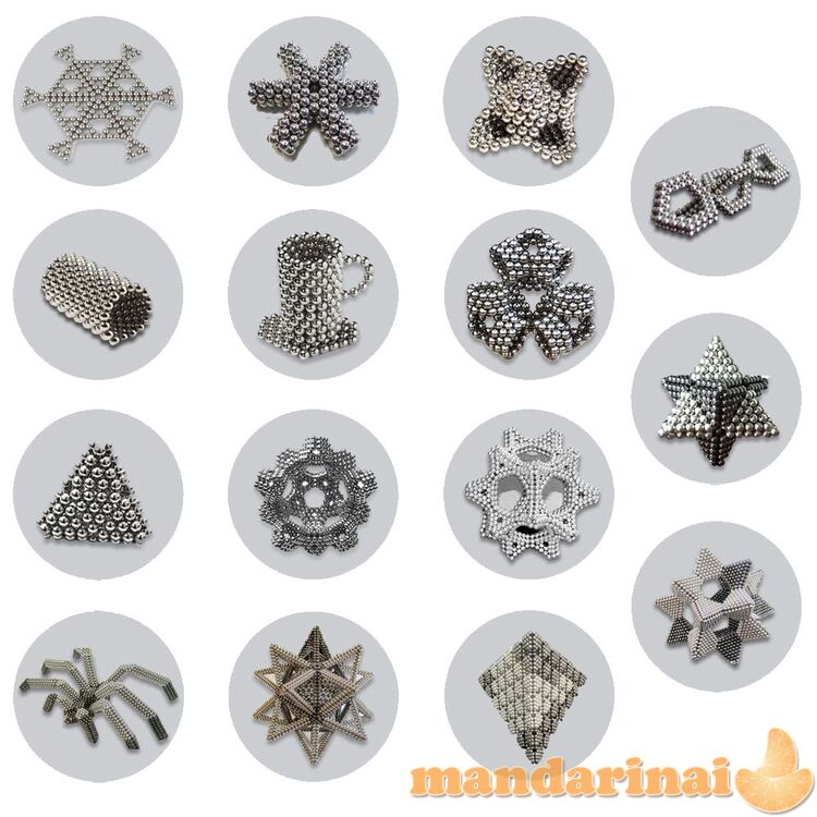 Magnetintų rutuliukų rinkinys - tai nepaprastas, intelektualus žaidimas. Iš kamuoliukų galite sukurti daugybę skirtingų formų, kombinacijų įvairovė yra beribė. Galima statyti tiek 2D, tiek 3D objektus.