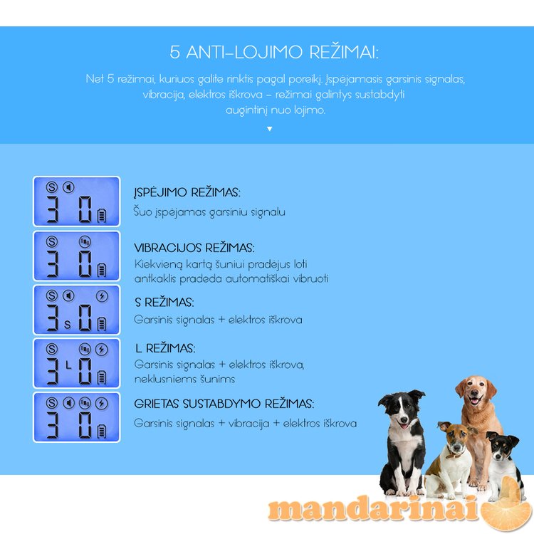 Pakraunamas 3 režimų anti-lojimo antkaklis: